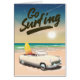Go Surfing Travel poster, cartoon vacation beach surf poster print.