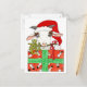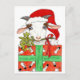 Drawing of goat in a present box, wearing a santa hat and carrying mistletoe in its mouth.