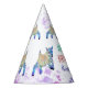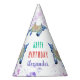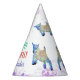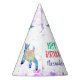 A cute farm animal kids any age birthday party paper hat with adorable jumping baby goat illustration. Cute jumping baby goat watercolor in vibrant pink, purple, blue, orange, yellow and aqua hues. A cute farm animals kids any age birthday party custom hat design. This fun party hat is easy to personalize by using the modern typography template to create unique birthday party hat suitable for child and adult goat lovers. Unique multicolored psychedelic goat original illustrations. Original artwork by artist Catherine Sweetman