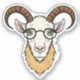 A humourous and whimsical sticker depicting a goat's head, wearing sunglasses and a wide smile. The goat's eyes are animated with a playful twinkle, and its pointed horns are adorned with colourful flowers. The overall design is cheerful and lighthearted, perfect for adding a touch of fun and humour to any message or social media post.