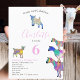 Ideal party theme for the girl who loves animals with this adorable collection of colourful watercolor goat illustrations in vibrant pink, purple, blue, orange, yellow and aqua. A cute farm animals 6th birthday party invitation with baby goats and goats standing on goats. This fun party invitation is easy to personalized to create a unique party invitation suitable for children and adult goat lovers. Colourful pink themed psychedelic goat original illustrations by artist Catherine Sweetman
