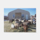 Goats and Sheep gather in front of the barn to enjoy their winter feed of hay on this peaceful Nevada Ranch.