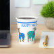 These custom party supplies featuring cute, realistic style illustrations of goats wearing pyjamas making them perfect for slumber parties. These paper cups are ready to be customized with your own message in bright blue lettering.