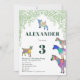 Colourful goats in vibrant pink, purple, blue, orange, yellow and aqua with a green foliage background. A cute farm animals 3rd birthday party invitation with baby goats and goats standing on goats. This fun party invitation is easy to personalized to create a unique party invitation suitable for children and adult goat lovers. Colourful psychedelic goat original illustrations by artist Catherine Sweetman