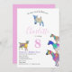 A collection of colourful watercolor goat illustrations in vibrant pink, purple, blue, orange, yellow and aqua. A cute farm animals 8th birthday party invitation with baby goats and goats standing on goats. This fun party invitation is easy to personalized to create a unique party invitation suitable for children and adult goat lovers. Colourful pink themed psychedelic goat original illustrations by artist Catherine Sweetman