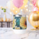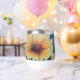 Cette tasse thermique est imprimée avec un motif d'hibiscus jaune dessiné à la main.