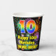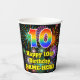 Cette conception joyeuse et amusante de tasse en papier à thème d'anniversaire dispose d'un grand nombre "10" avec un motif inspiré par un gradient de spectre arc-en-ciel. Il comporte également le message "Joyeux 10e anniversaire", et un nom personnalisable. L'arrière - plan présente un motif coloré inspiré par l'allure d'un feu d'artifice festif éclatant. Des tasses en papier colorées et vibrantes comme celle-ci peuvent être amusantes à utiliser lors d’une fête d’anniversaire ou d’une fête organisée pour honorer le dixième anniversaire de quelqu’un. [~Z0000539]