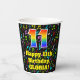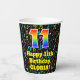 Ce design de gobelet en papier d'anniversaire à thème de musique joyeuse et joyeuse comporte un grand nombre de "11" avec un dégradé de arc-en-ciel inspiré motif, avec le message "Happy 11th Birthday," et un nom modifiable. L'arrière - plan dispose d'un motif de notes de musique colorées et de symboles. Des tasses de papier colorées et vibrantes comme celle-ci peuvent être amusantes à avoir lors d’une fête d’anniversaire qui se tient à l’occasion du 11e anniversaire de quelqu’un. [~Z0000541]