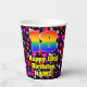 Cette conception amusante et joyeuse de tasse en papier à thème d'anniversaire dispose d'un grand nombre "18" ayant un motif inspiré par un gradient de spectre arc-en-ciel. Il comporte également le message "Joyeux 18e anniversaire", et un nom personnalisable. L'arrière - plan présente un motif aux formes de coeur rouge, rose et violet. Des tasses de papier gaies et joyeuses comme celle-ci peuvent être amusantes à utiliser lors d’une fête d’anniversaire qui se tient pour célébrer le dix-huitième anniversaire de quelqu’un. [~Z0000548]