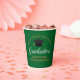 Ces coupes en papier élégantes, vertes et dorées, pour la fête de fin d'études supérieures, présentent une typographie blanche de classe sous un nom de lycée ou de collège pour la classe de 2023. Customisez cette tasse avec votre année de graduation sous l'élégante calligraphie pour une décoration supérieure personnalisée.