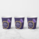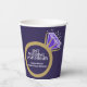 Bague violet et or sur un arrière - plan violet foncé moderne fait et mariage anniversaire fêtes tasses de papier. Personnalisez ces tasses d'anniversaire avec votre propre nom et des faits amusants sur votre couple. D'autres articles correspondants sont également disponibles. © Design original de bague graphique par Sarah Trett pour www.mylittleeden.com et www.mylittleedenweddings.com sur Zazzle.