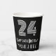 Ce look vintage et le style des années 1920/1930 inspiré design de tasse de papier d'anniversaire comprend un grand numéro de style Art déco inspiré "24", plus le message de voeux d'anniversaire "Happy 24th Birthday," et un nom personnalisé. Il dispose également d'une arrière - plan de couleur noire. Des tasses en papier inspirées du style des années 1920-1930 comme celle-ci pourraient être amusantes à utiliser lors d’une fête d’anniversaire en l’honneur du vingt-quatrième anniversaire de quelqu’un. [~Z0000542]