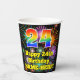 Ce design coloré et amusant de tasse en papier à thème d'anniversaire dispose d'un grand nombre "24" avec un dégradé de spectre arc-en-ciel inspiré motif. Il comporte également le message "Joyeux 24e anniversaire", et un nom personnalisable. L'arrière - plan présente un motif coloré inspiré par les feux d'artifice de la fête. Des tasses de papier colorées et vibrantes comme celle-ci peuvent être amusantes à avoir lors d’une fête d’anniversaire qui a lieu pour honorer le vingt-quatrième anniversaire de quelqu’un. [~Z0000539]