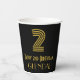 Ce design de gobelet en papier d'anniversaire inspiré et vintage des années 1920-1930 comprend un grand look Art déco inspiré numéro "2", ainsi que le message de bienvenue d'anniversaire "Happy 2nd Birthday," et un nom personnalisable. L'arrière - plan est noir de couleur. Des tasses de papier inspirées du style des années 1920-1930, comme celle-ci, pourraient être utilisées à une fête pour célébrer le deuxième anniversaire de quelqu’un. [~Z0000546]