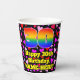 Ce design coloré et joyeux de tasse de papier d'anniversaire comporte un grand nombre "30" avec un motif inspiré par un gradient de spectre arc-en-ciel. Il comporte également le message "Joyeux 30e anniversaire", et un nom personnalisé. L'arrière - plan présente un motif aux formes de coeur rose, violet et rouge. Des tasses de papier amoureuses et amusantes comme celle-ci peuvent être amusantes à utiliser lors d’une fête d’anniversaire ou d’une célébration pour célébrer le 30e anniversaire de quelqu’un. [~Z0000548]