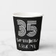 Ce design de tasse en papier d'anniversaire inspiré et vintage du style des années 1920-1930 comporte un grand numéro d'apparence d'inspiration art déco "35", en plus du message de bienvenue d'anniversaire "35e anniversaire heureux", et un nom modifiable. L'arrière - plan est noir de couleur. Des tasses en papier comme celle-ci peuvent être utilisées à une fête pour quelqu'un qui célèbre son 35e anniversaire. [~Z0000542]