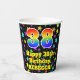 Cette conception amusante et colorée de tasse de papier d'anniversaire comporte un grand nombre "38" avec un dégradé de arc-en-ciel inspiré motif, avec le message "Happy 38th Birthday," et un nom modifiable. L'arrière - plan dispose d'un motif passionnant et coloré avec de nombreuses formes étoiles avec des couleurs et des tailles différentes. Des tasses de papier colorées et vibrantes comme celle-ci peuvent être amusantes à avoir lors d’une fête d’anniversaire organisée pour célébrer le trente-huitième anniversaire de quelqu’un. [~Z0000540]