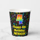 Ce design de gobelet en papier d'anniversaire à thème musical amusant et coloré comprend un grand nombre de "4" ayant un dégradé arc-en-ciel inspiré motif. Il comporte également le message "Joyeux 4e anniversaire", et un nom personnalisé. L'arrière - plan dispose d'un motif passionnant et coloré de différentes notes de musique et symboles de différentes couleurs et tailles. Des tasses de papier colorées et vibrantes comme celle-ci peuvent être amusantes à avoir lors d’une fête d’anniversaire ou d’une fête organisée pour célébrer le quatrième anniversaire de quelqu’un. [~Z0000541]