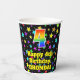 Cette conception joyeuse et joyeuse de tasse de papier d'anniversaire comporte un grand nombre "4" avec un dégradé de arc-en-ciel inspiré motif, avec le message "Happy 4th Birthday,", et un nom personnalisable. L'arrière - plan dispose d'un motif multicolore inspiré par un champ d'étoiles. Des tasses en papier colorées et vibrantes comme celle-ci peuvent être amusantes à utiliser lors d’une fête d’anniversaire ou d’une fête organisée pour honorer le quatrième anniversaire de quelqu’un. [~Z0000540]