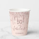 Pour une fête d'anniversaire de 50 ans et fabuleuse (ou tout âge), glamour et féminine. Un arrière - plan rose féminin en or dégradé. À l'avant et à l'arrière : Personnalisez et ajoutez un nom et 50 ans. Décoré avec des gouttes de parties scintillant faux, la peinture goutte à goutte.