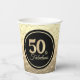 Une élégante tasse de papier cinquantième anniversaire avec l'or chic et le design noir.