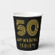 Ce look vintage et le style des années 1920-1930 inspiré d'anniversaire de conception de tasse en papier à thème comprend un grand look Art déco inspiré numéro "50", en plus du message de bienvenue d'anniversaire "Happy 50th Birthday," et un nom personnalisé. L'arrière - plan est noir de couleur. Des tasses de papier sur le thème de l’anniversaire comme celle-ci pourraient être une façon amusante de célébrer le cinquantième anniversaire de quelqu’un. [~Z0000546]