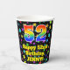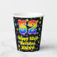 This colorful and fun birthday paper cup desobjets a large number "52" with un rainbow spectrum gradient inspecbltern, along with the message "Happy 52 nd Birthday," et a custom name. The background feesta colorful pattern featuring many star shapes with different colors and sizes. Vibrant, colorful paper cups like this might be fun to have at a birthday celebration/party g held to celebrate somebody's 52nd birthday. 2