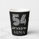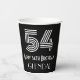 Cette tasse en papier d'anniversaire, inspirée et vintage du style des années 1920-1930, est dotée d'un grand numéro d'apparence d'inspiration art déco "54", d'un message d'anniversaire "54e anniversaire heureux" et d'un nom personnalisé. Il dispose également d'une arrière - plan de couleur noire. Des tasses de papier à thème d’anniversaire d’apparence vintage comme celle-ci pourraient être utilisées à une fête pour célébrer le 54e anniversaire de quelqu’un. [~Z0000542]