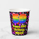 Cette conception amusante et joyeuse de tasse en papier à thème d'anniversaire comporte un grand nombre de "59" avec un dégradé de arc-en-ciel inspiré motif, avec le message "Happy 59th Birthday,", et un nom personnalisé. L'arrière - plan présente un motif de formes cardiaques rouges, roses et violettes de différentes tailles. De jolies tasses de papier comme celle-ci peuvent être amusantes à avoir lors d’une fête d’anniversaire ou d’une fête célébrant le 59e anniversaire de quelqu’un. [~Z0000548]