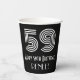 Cette tasse en papier inspirée et vintage de Roaring Twenties est décorée d'un grand style Art déco inspiré numéro "59", ainsi que le message de voeux d'anniversaire "Happy 59th Birthday," et un nom modifiable. L'arrière - plan est noir de couleur. Des tasses de papier sur le thème de l’anniversaire comme celle-ci pourraient être utilisées lors d’une fête d’anniversaire célébrant le cinquantenaire de quelqu’un. [~Z0000542]
