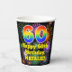 Cette conception amusante et joyeuse de tasse en papier sur le thème de l'anniversaire comporte un grand nombre de "60" avec un motif inspiré par un gradient de spectre arc-en-ciel, avec le message "Joyeux 60e anniversaire", et un nom personnalisable. L'arrière - plan présente un motif coloré inspiré par l'allure d'un feu d'artifice festif éclatant. Des tasses de papier colorées et vibrantes comme celle-ci peuvent être amusantes à avoir lors d’une fête d’anniversaire ou d’une fête qui a lieu pour honorer le soixantième anniversaire de quelqu’un. [~Z0000539]