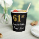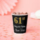 Cette conception sophistiquée, élégante et luxueuse de tasse en papier à thème d'anniversaire comporte un grand numéro ordinal "61st" avec un motif dégradé faux/imitation or, en plus du message de voeux d'anniversaire "Happy 61st Birthday", et un nom personnalisable dans une police de style script. L'arrière - plan est noir de couleur. Des tasses de papier comme celle-ci peuvent être utilisées pour célébrer le soixante et unième anniversaire de quelqu’un. [~Z0000538]