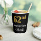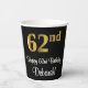 Ce design élégant, sophistiqué et luxueux de tasse en papier à thème d'anniversaire comporte un grand numéro ordinal "62e" ayant une imitation/fausse apparence or, en plus du message de voeux d'anniversaire "Happy 62e anniversaire", et un nom personnalisé dans une police de style script. L'arrière - plan est noir de couleur. De luxueuses tasses en papier comme celle-ci peuvent être amusantes à utiliser lors d'une fête d'anniversaire organisée pour quelqu'un qui célèbre son soixante-deuxième anniversaire. [~Z0000538]