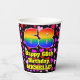 Ce design coloré et heureux de tasse de papier d'anniversaire comprend un grand nombre "68" avec un motif inspiré par un gradient de spectre arc-en-ciel. Il comporte également le message "Joyeux 68e anniversaire", et un nom personnalisable. L'arrière - plan est doté d'un motif de formes cardiaques aux couleurs comme le violet, le rose et le rouge. Des tasses de papier amicales comme celle-ci peuvent être amusantes à utiliser lors d’une fête d’anniversaire ou d’une fête organisée pour célébrer le soixante-huitième anniversaire de quelqu’un. [~Z0000548]