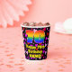Ce design de gobelet en papier joyeux et coloré sur le thème de l'anniversaire comporte un grand nombre de "70" avec un motif inspiré par un gradient de spectre arc-en-ciel, ainsi que le message "Happy 70th Birthday," et un nom personnalisable. L'arrière - plan présente un motif de différentes tailles, aux formes de coeur violet, rose et rouge. Des tasses de papier aussi amusantes et optimistes pourraient être amusantes à utiliser lors d’une fête d’anniversaire qui se tient à l’occasion du 70e anniversaire de quelqu’un. [~Z0000548]