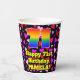 Ce design joyeux et heureux de tasse de papier d'anniversaire dispose d'un grand nombre "71" avec un motif inspiré par un gradient de spectre arc-en-ciel. Il comporte également le message "Joyeux 71e anniversaire", et un nom modifiable. L'arrière - plan présente un motif de formes cardiaques rouges, violettes et roses de différentes tailles. Des tasses de papier aussi jolies et amusantes pourraient être amusantes à utiliser lors d’une fête d’anniversaire ou d’une fête célébrant le 71e anniversaire de quelqu’un. [~Z0000548]