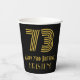 Ce style vintage et le style des années 1920-1930 inspiré par l'anniversaire de conception de tasse en papier avec un grand numéro de style Art déco inspiré "73", plus le message de bienvenue d'anniversaire "Happy 73rd Birthday," et un nom personnalisé. L'arrière - plan est noir de couleur. Des tasses de papier comme celle-ci peuvent être utilisées lors d’une fête d’anniversaire organisée pour célébrer le 73e anniversaire de quelqu’un. [~Z0000546]