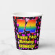 Cette conception joyeuse et colorée de tasse en papier à thème d'anniversaire comporte un grand nombre de "74" avec un dégradé arc-en-ciel inspiré motif, avec le message "Happy 74th Birthday," et un nom modifiable. L'arrière - plan présente un motif aux formes de coeur rose, violet et rouge. Des gobelets de papier gais et heureux comme celui-ci peuvent être amusants à utiliser lors d’une fête d’anniversaire qui a lieu pour célébrer le soixante-quatorzième anniversaire de quelqu’un. [~Z0000548]