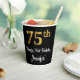 Ce design sophistiqué, élégant et élégant de tasse en papier à thème d'anniversaire comprend un grand numéro ordinal "75ème" avec une imitation/faux look or, ainsi que le message de voeux d'anniversaire "Happy 75ème anniversaire", et un nom personnalisé dans une police de style script. L'arrière - plan est noir de couleur. Des tasses de papier à thème comme celle-ci peuvent être utilisées lors d’une fête célébrant le 75e anniversaire de quelqu’un. [~Z0000538]