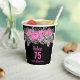75e anniversaire noir floral tasses en papier. Personnalisez le nom et l'âge.