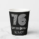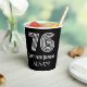 Cette apparence vintage et la conception de tasse de papier d'anniversaire Roaring Twenties inspirée d'un grand art déco inspiré numéro "76", ainsi que le message de voeux d'anniversaire "Happy 76th Birthday," et un nom personnalisé. Il dispose également d'une arrière - plan de couleur noire. Des tasses de papier comme celle-ci pourraient être utilisées à une fête pour quelqu'un qui fête son soixante-seizième anniversaire. [~Z0000542]