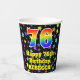 Ce design coloré et amusant de tasse en papier d'anniversaire comprend un grand nombre de "76" ayant un motif inspiré par un gradient de spectre arc-en-ciel. Il comporte également le message "Joyeux 76ème anniversaire", et un nom personnalisé. L'arrière - plan dispose d'un motif multicolore inspiré d'un champ d'étoiles. Des tasses de papier colorées et vibrantes comme celle-ci peuvent être amusantes à avoir lors d’une fête d’anniversaire qui a lieu pour célébrer le 76e anniversaire de quelqu’un. [~Z0000540]