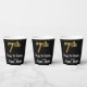 Cette conception sophistiquée, élégante et luxueuse de tasse en papier à thème d'anniversaire comporte un grand numéro ordinal "7th" ayant un look faux/imitation or, ainsi que le message de voeux d'anniversaire "Happy 7th Birthday," et un nom personnalisé dans une police de style script. L'arrière - plan est noir de couleur. Des tasses de papier sur le thème de l’anniversaire comme celle-ci pourraient être une façon amusante de célébrer le 7e anniversaire de quelqu’un. [~Z0000538]