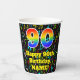 Cette conception amusante et joyeuse de tasse de papier d'anniversaire sur le thème de la musique dispose d'un grand nombre "90" avec un motif inspiré par un gradient de spectre arc-en-ciel. Il comporte également le message "Joyeux 90e anniversaire", et un nom personnalisable. L'arrière - plan dispose d'un motif de notes de musique multicolores et de symboles. Des tasses de papier colorées et vibrantes comme celle-ci peuvent être amusantes à avoir lors d’une fête d’anniversaire ou d’une fête organisée pour célébrer le 90e anniversaire de quelqu’un. [~Z0000541]