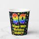 Cette conception colorée et joyeuse de tasse de papier d'anniversaire comporte un grand nombre de "90" avec un dégradé arc-en-ciel inspiré motif, avec le message "Joyeux 90e anniversaire", et un nom personnalisé. L'arrière - plan dispose d'un motif dynamique et coloré avec de nombreuses formes étoiles avec des couleurs et des tailles différentes. Des tasses de papier colorées et vibrantes comme celle-ci peuvent être amusantes à utiliser lors d’une fête d’anniversaire qui se tient pour célébrer le quatre-vingt-dixième anniversaire de quelqu’un. [~Z0000540]