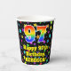 Ce design coloré et excitant de tasse en papier d'anniversaire comprend un grand nombre de "97" ayant un motif inspiré par un gradient de spectre arc-en-ciel. Il comporte également le message "Joyeux 97e anniversaire", et un nom personnalisé. L'arrière - plan dispose d'un motif multicolore avec de nombreuses formes étoiles avec des couleurs et des tailles différentes. Des tasses en papier colorées et vibrantes comme celle-ci peuvent être amusantes à utiliser lors d’une fête d’anniversaire ou d’une fête organisée pour célébrer le quatre-vingt-dix-septième anniversaire de quelqu’un. [~Z0000540]