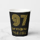This 1920s-1930s style inspired and vintage look birthday-themed paper cup design features a large art deco inspired appearance number “97”, in addition to the birthday greeting message “Happy 97th Birthday,” and an editable name. It also has a black-colored background. 1920s-1930s style inspired paper cups like this might be fun to use at a birthday party being held for somebody who is celebrating their ninety seventh birthday. [~Z0000546]
