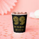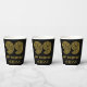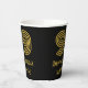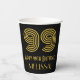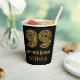 This 1920s-1930s style inspired and vintage look birthday themed paper cup design features a large art deco inspired style number “99”, plus the birthday greeting message “Happy 99th Birthday,” and an editable name. The background is colored black. 1920s-1930s style inspired birthday themed paper cups like this might be used at a party celebrating somebody’s ninety ninth birthday. [~Z0000546]