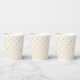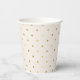 Gobelets en papier pour fête à motif pois de polka dorés. Faux pois en feuille d'or sur fond rose pastel.