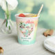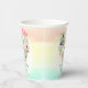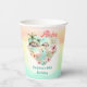 Des tasses en papier tropicales d'été à thème hawaïen aux couleurs pastel, dotées d'un coeur tropical avec vue sur la plage, de flamants roses et de fleurs avec un arrière - plan de couleur arc-en-ciel. Personnalisez facilement le texte. - Kate Eden Art
